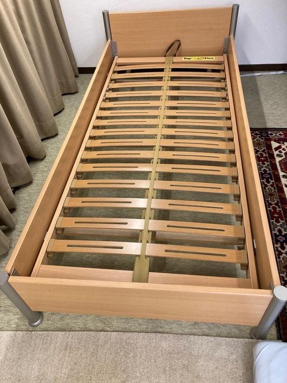 Ein gebrauchtes holzbett mit gitterrost (luroy 70cm x 2.
